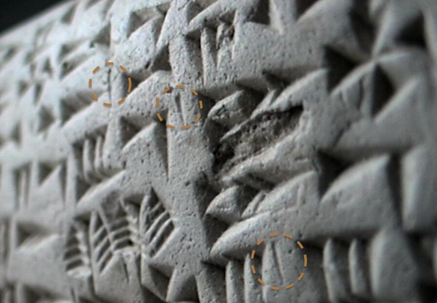 | 𐎘𐎙𐎗 (ثغر ṯġr) | ثغر (ṯġr) | שער (شعر šʿr) |